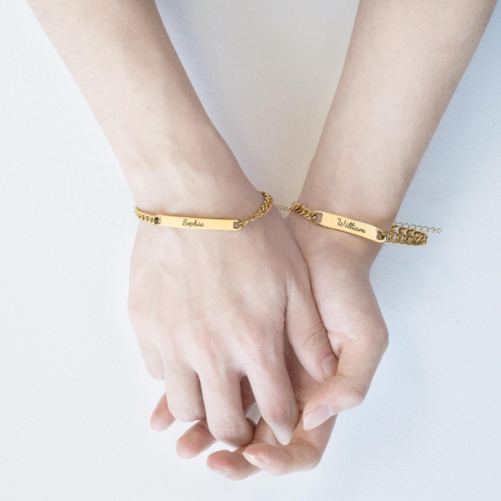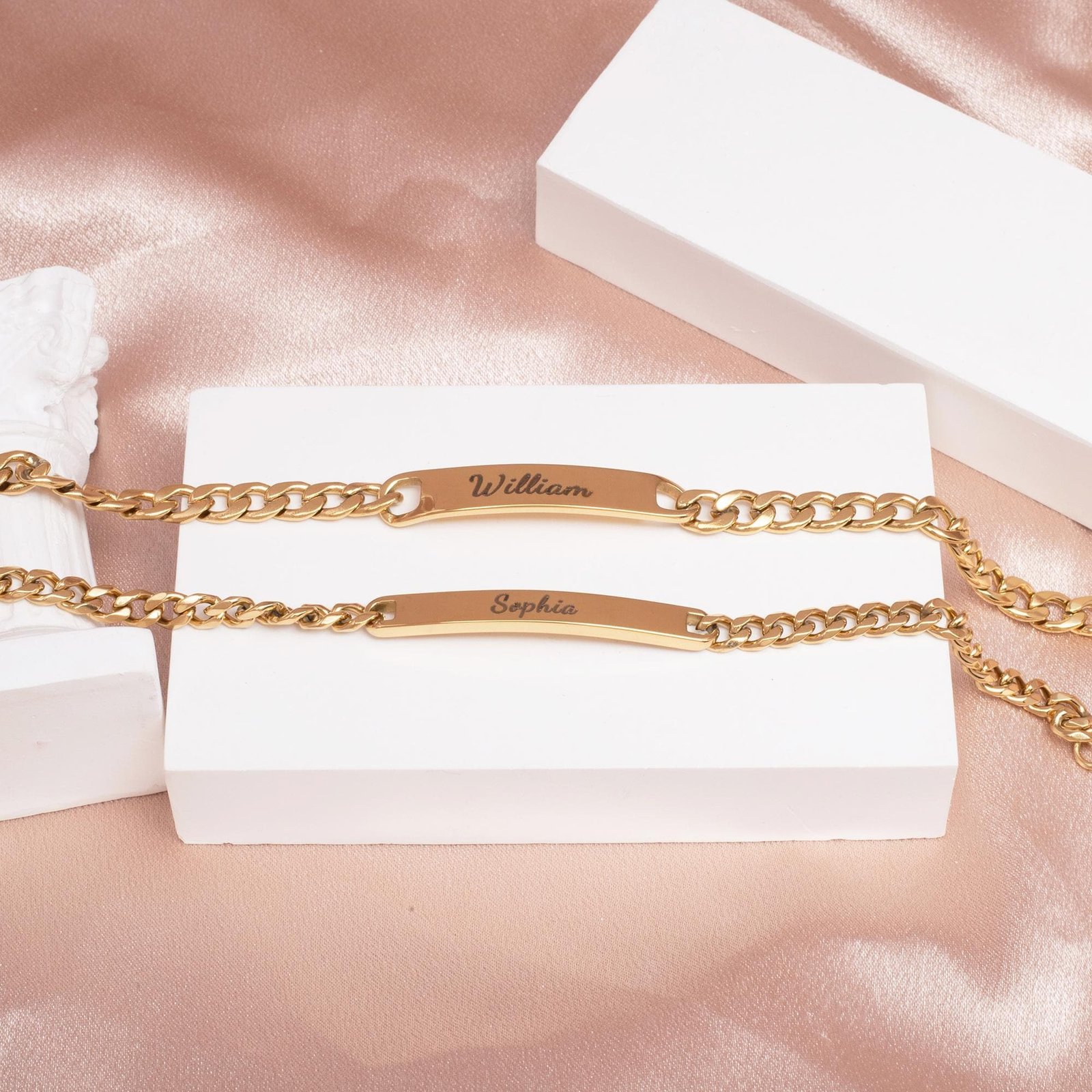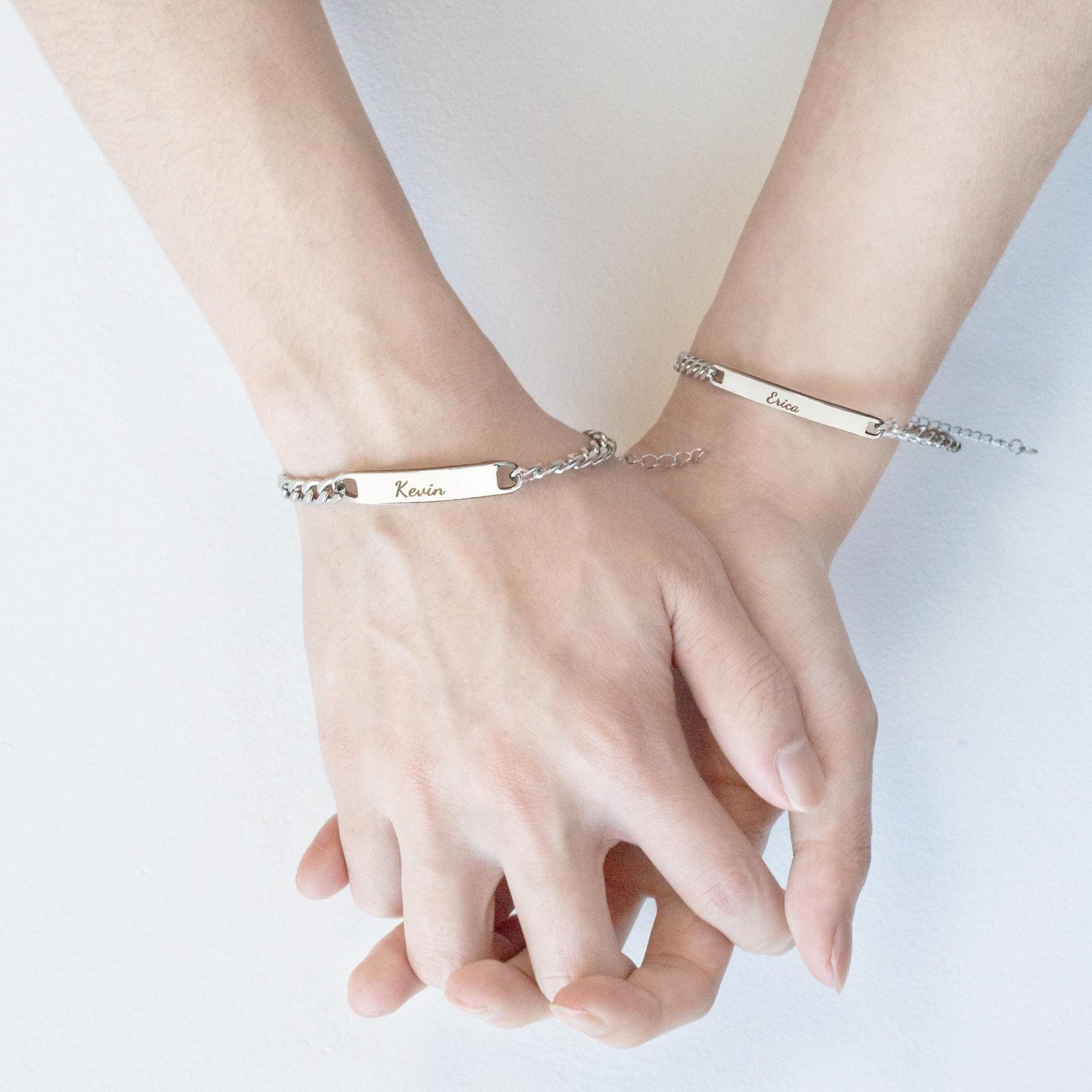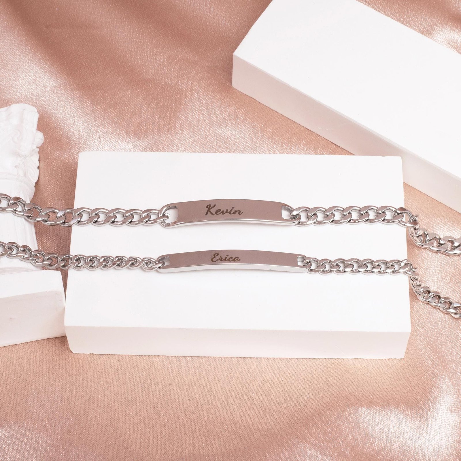 Custom Engraved Couples Bracelet Set – His and Her Matching Bracelets