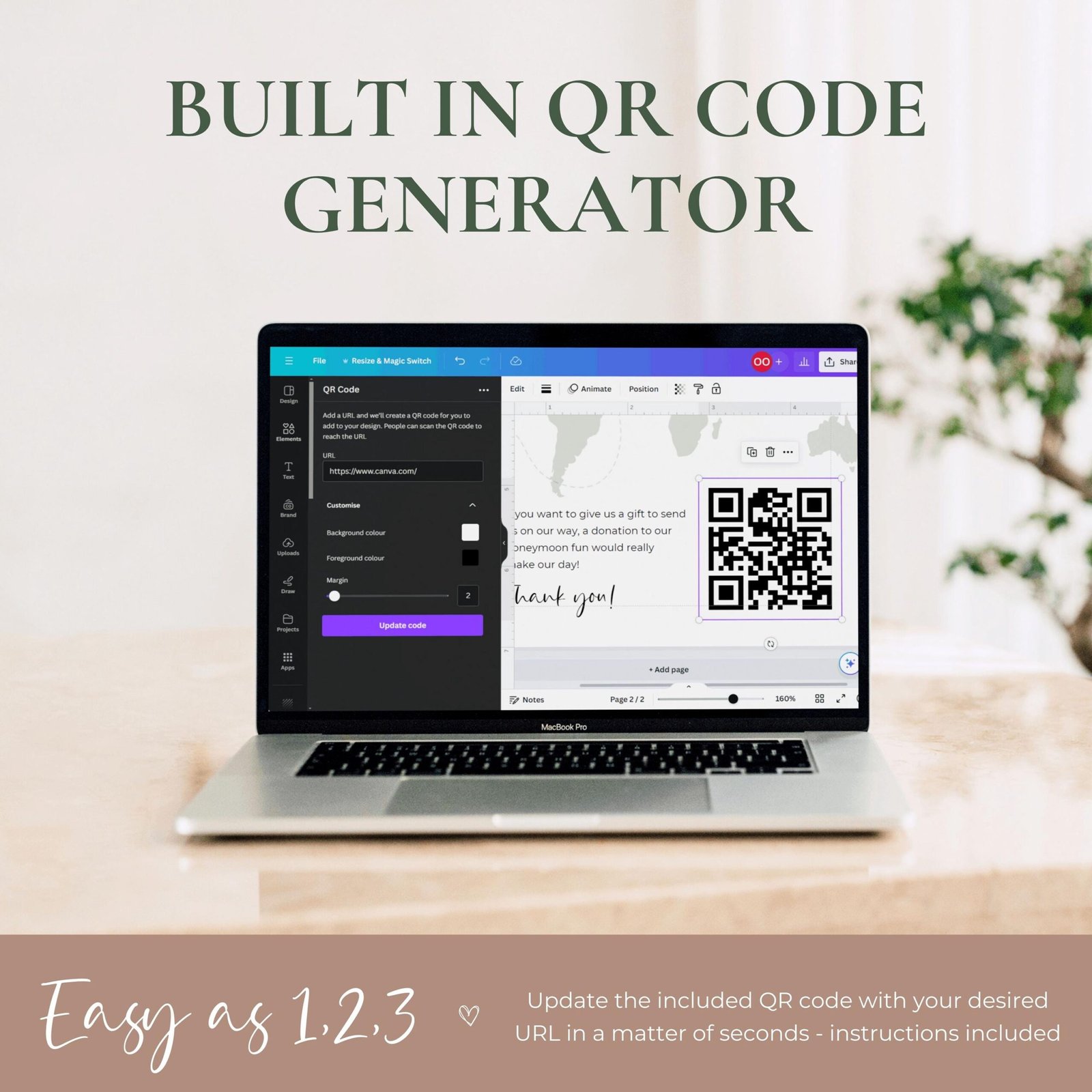 Ready to revolutionize your wedding registry? Introducing our Custom Honeymoon Fund QR Code Sign – a contemporary and stylish solution for couples looking to streamline their gift registry while embarking on their post-wedding adventures. Elevate your wedding experience with this modern cash gift option that adds a touch of sophistication to your celebration.