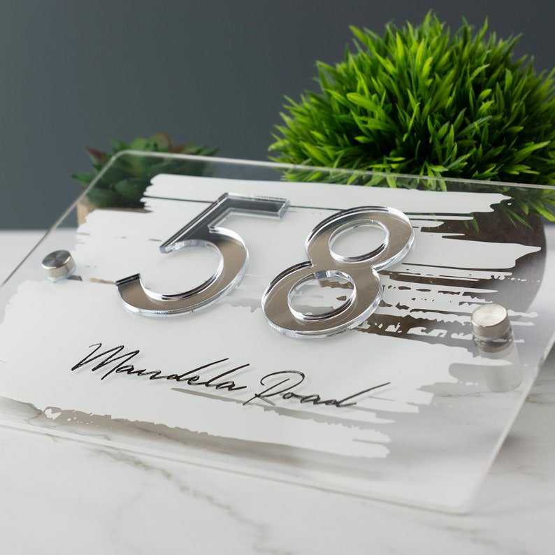 • Sleek Modern Design: The combination of a printed background with 3D mirror acrylic numbers offers a striking visual contrast that enhances any property’s appearance.