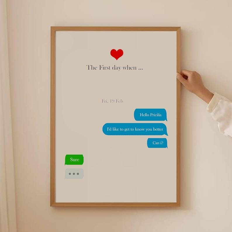 We all have that one message—the one that changed everything. A simple “Hey,” a joke, a date suggestion, or maybe a message that came at just the right time. With the How it all started – Custom Text Message Portrait, you can turn that fleeting digital moment into something tangible, timeless, and touching.