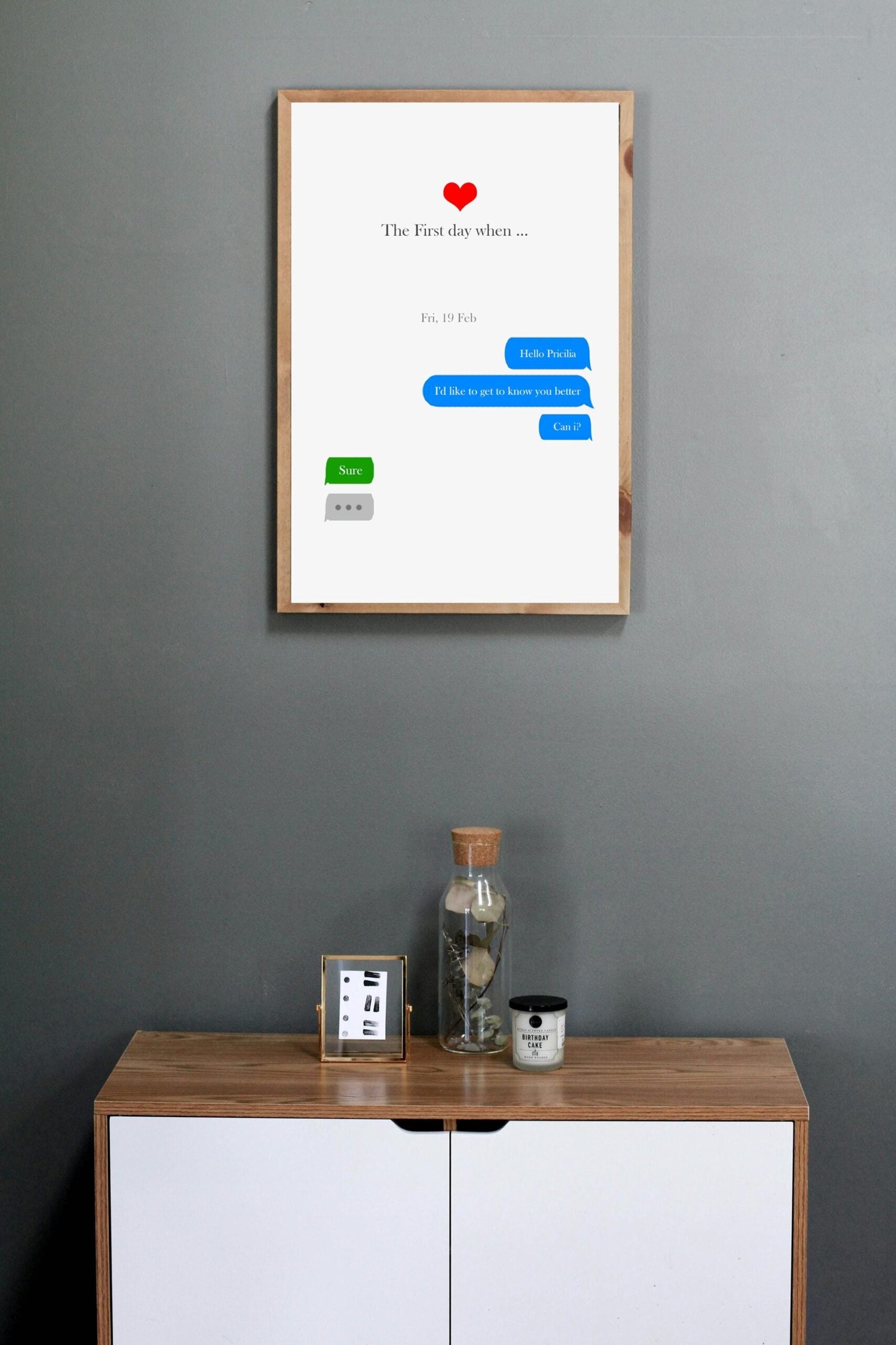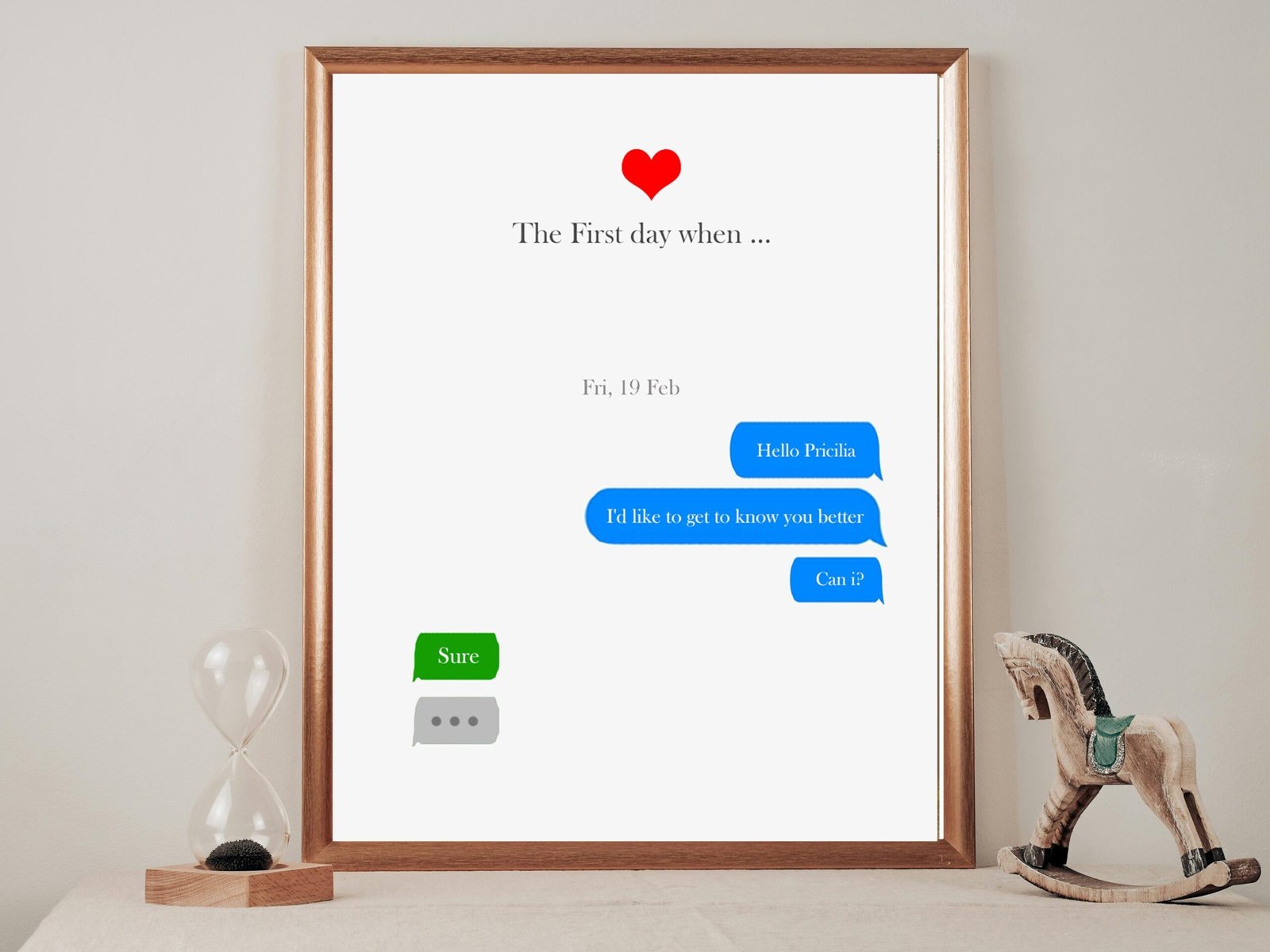 This isn’t just a printed chat bubble—it’s a window into your story. A snapshot of when everything began. Something to glance at and smile. Something that says “this is us.”