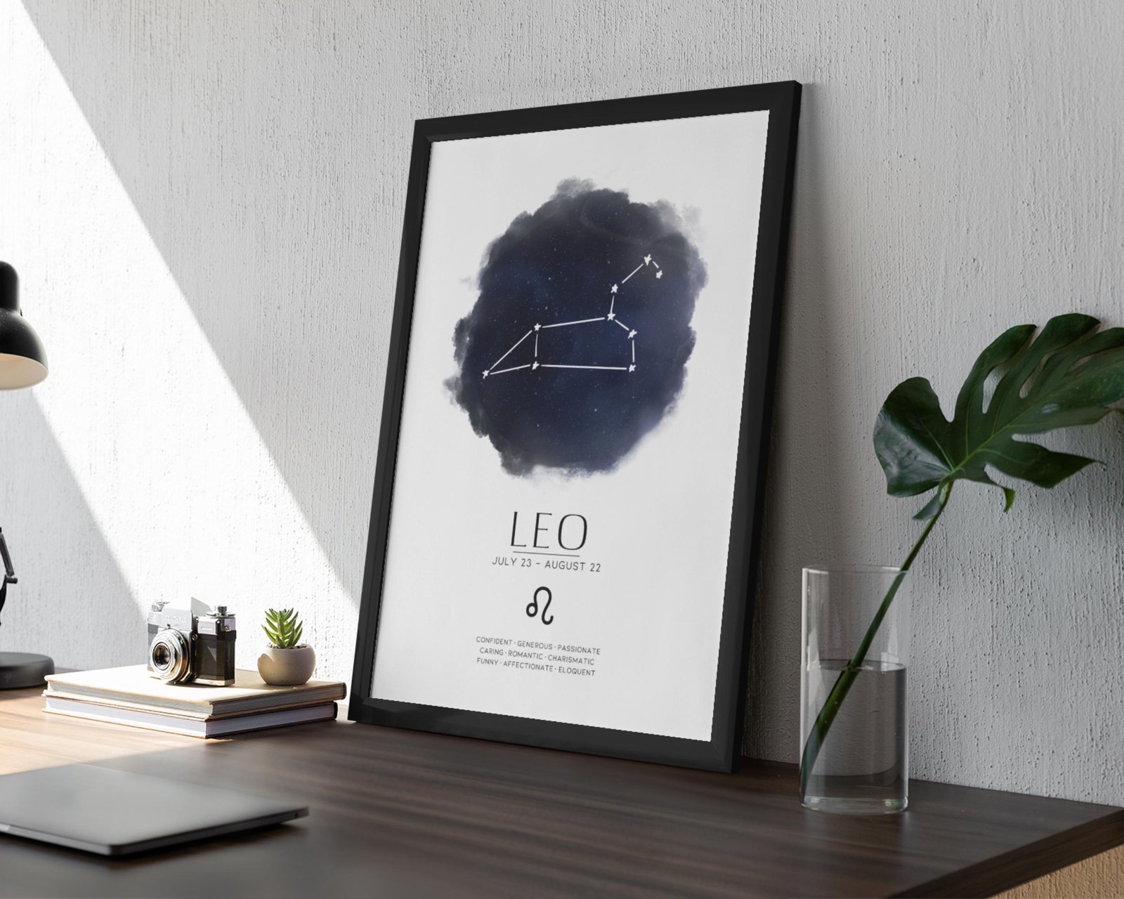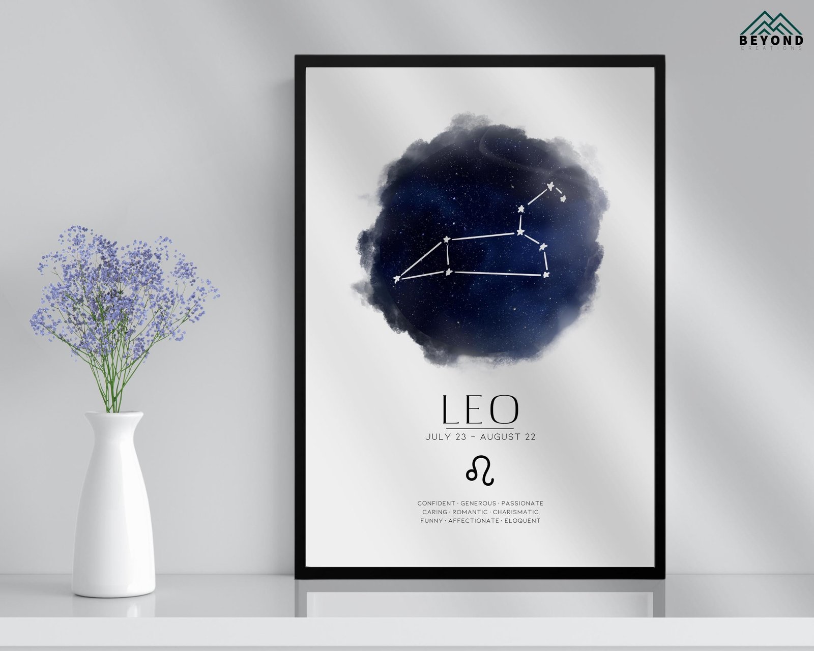 - 🧭 Zodiac Information Included Each print includes a minimalist description of Leo traits — courageous, generous, passionate — making it a conversation starter and reflection of personality.