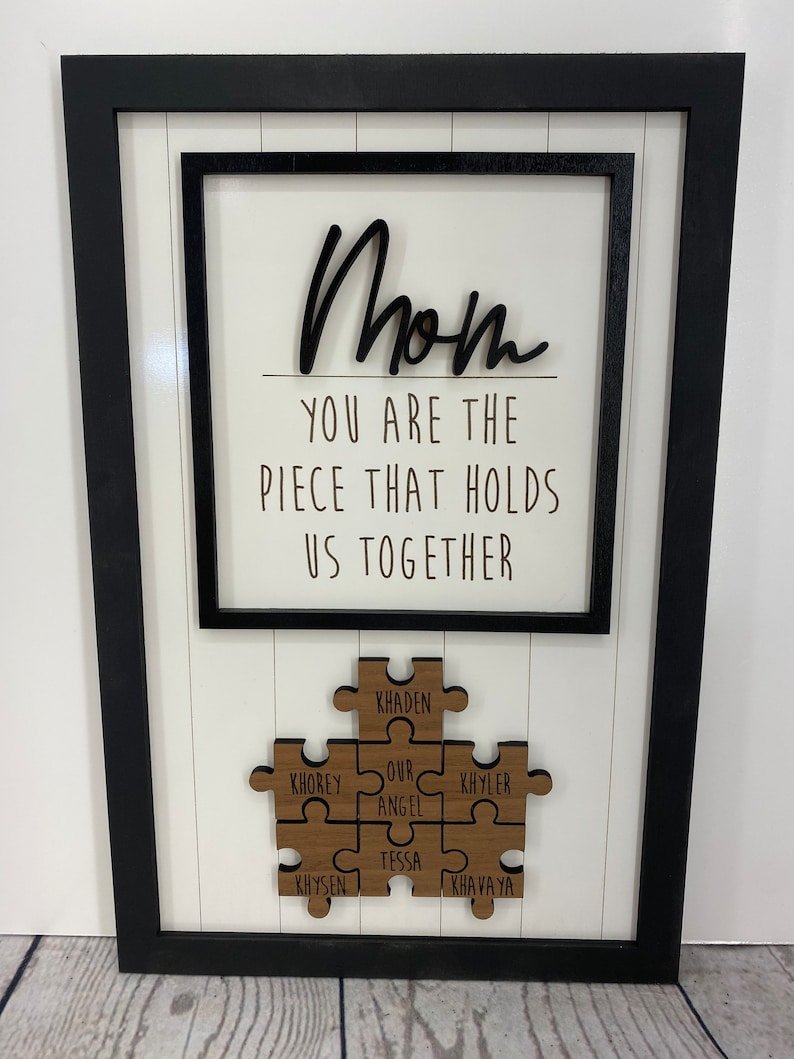 Looking for a heartfelt and unique gift for Mom, Grandma, or a special woman in your life? The custom engraved wood puzzle sign is a perfect choice! Crafted from high-quality wood and custom engraved with your choice of message, this puzzle piece sign is a wonderful addition to any home.