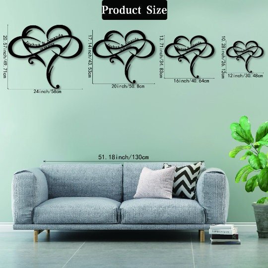 Add warmth and meaning to your home with the Personalized Eternal Love Symbol for Couples. Shaped with a timeless infinity symbol woven into a heart, this stunning metal artwork symbolizes unbreakable connection and forever love. Perfect for couples, newlyweds, or anyone cherishing lifelong bonds, this piece can be customized with names, initials, or a heartfelt message—turning it into a unique keepsake that reflects your personal love story.